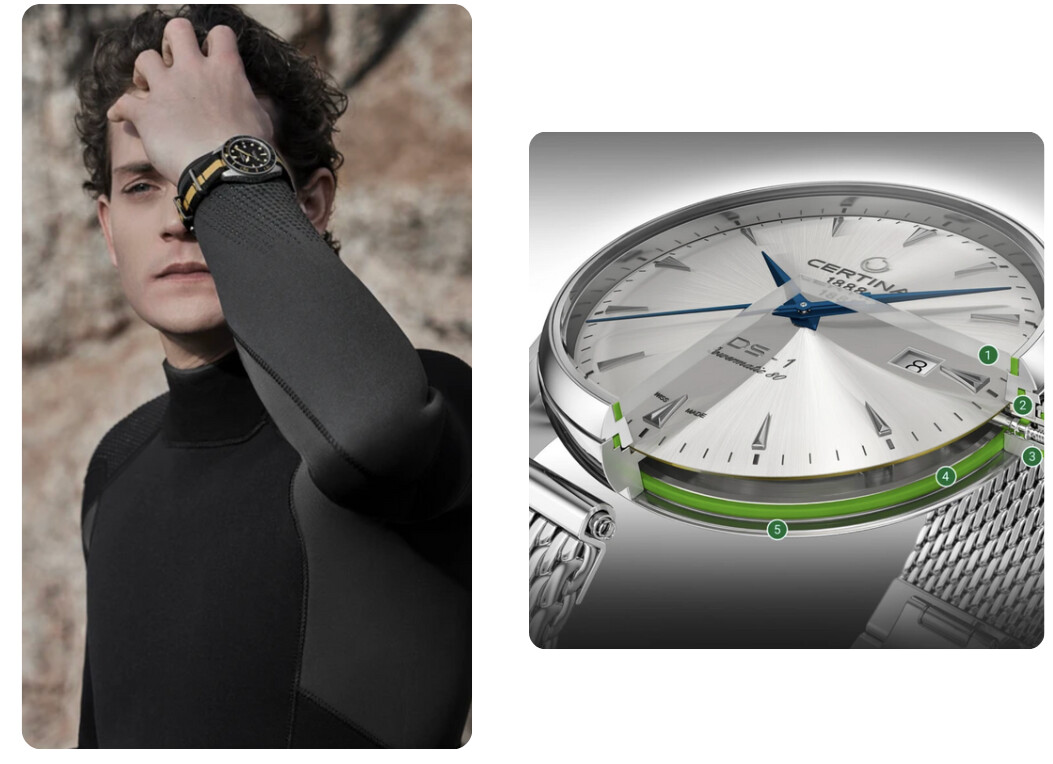 Grâce à sa philosophie Double Sécurité (DS) et à son expertise technique, Certina assure une protection optimale face aux chocs, à la pression et aux éléments. Qu’il s’agisse de la DS Action pour les aventuriers, de la DS PH au style vintage ou de la DS-1 plus urbaine, chaque montre illustre la même quête de performance et de précision.