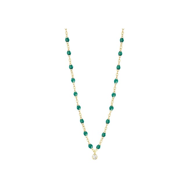 Collier Gigi Clozeau Gigi Suprême en or jaune, résine vert émeraude et diamants, taille 42cm
