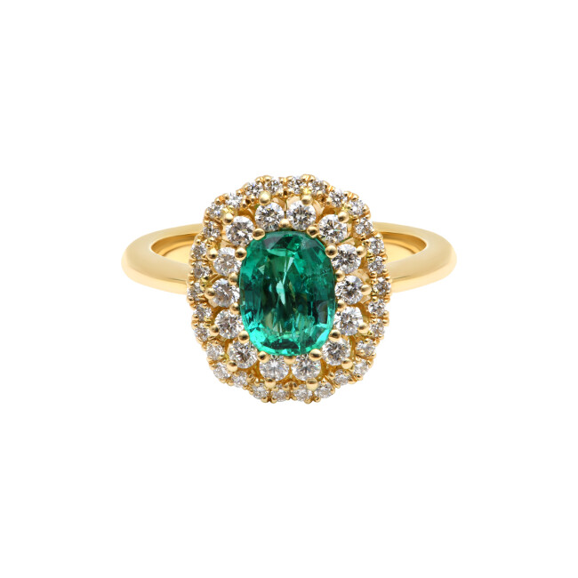 Bague Ponte Vecchio en or jaune, émeraude taille coussin et diamants