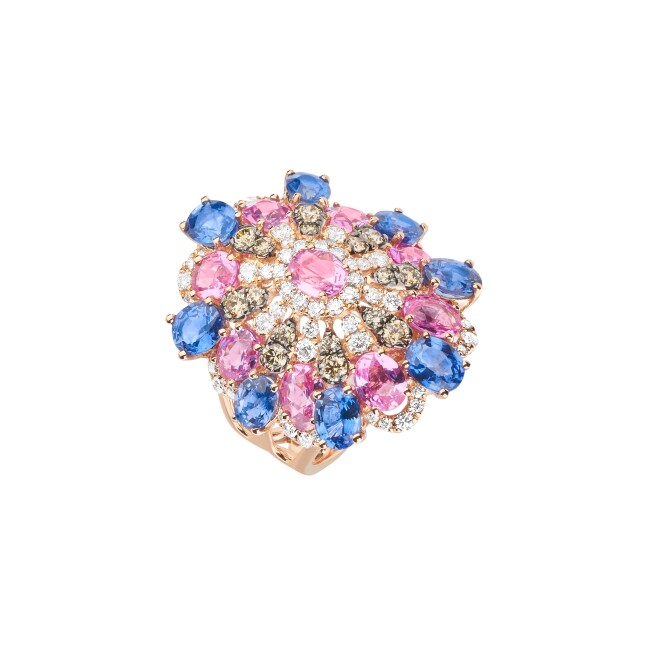 Collier Rainbow en or rose, multi-saphirs et diamants