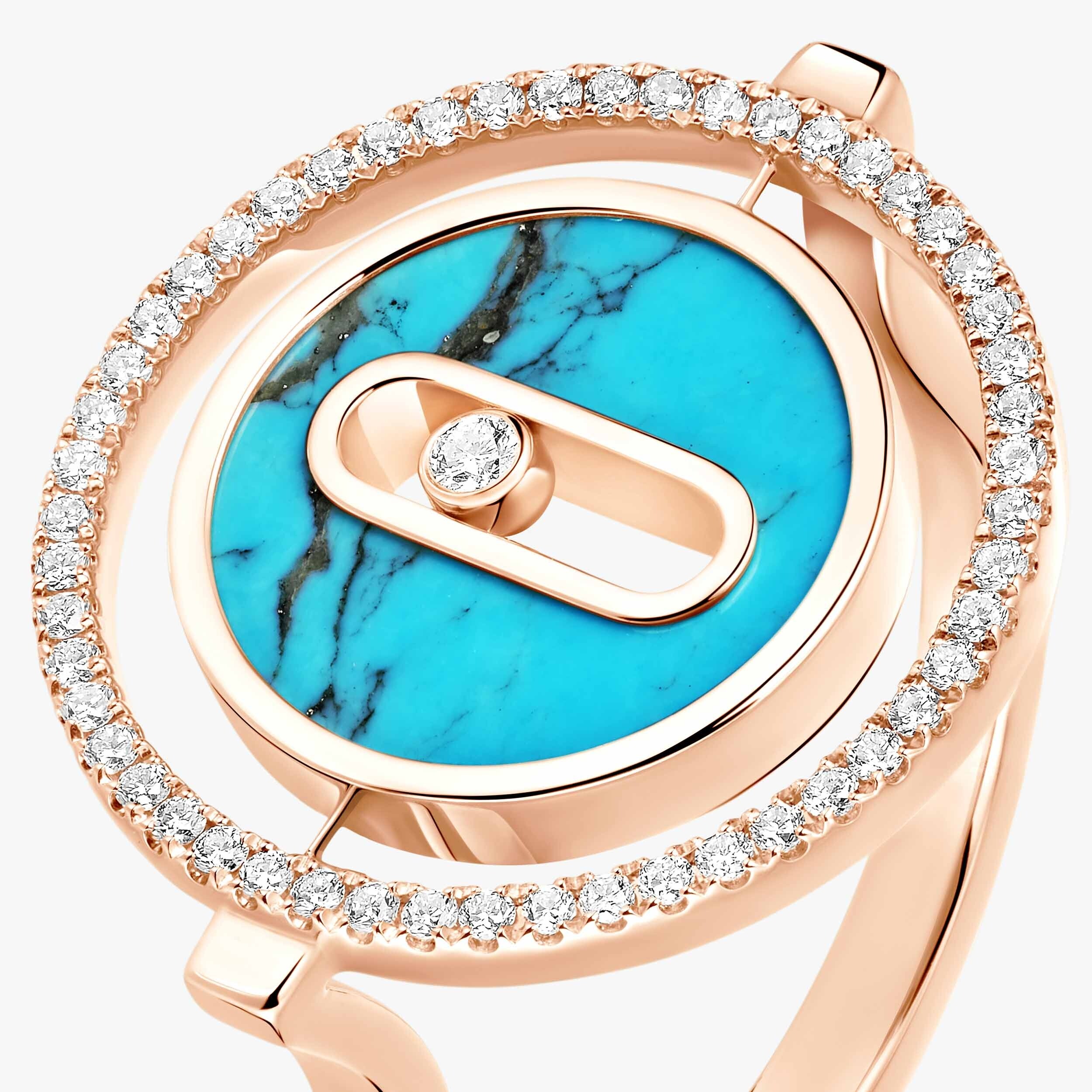 Inspirée par l’univers talismanique cher à Valérie Messika, la bague Lucky Move PM en or rose 18 carats associe l’éclat du diamant à la profondeur vibrante de la turquoise. Cette création emblématique de la collection Lucky Move revisite le bijou porte-bonheur dans une esthétique contemporaine, pensée pour être portée au quotidien.