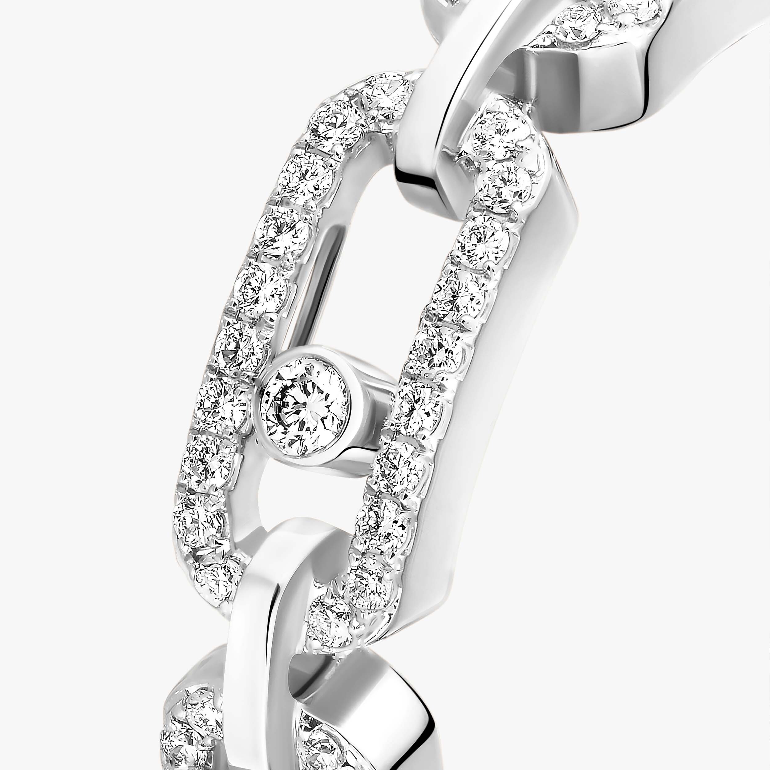 La collection Move incarne l'ADN créatif de Messika depuis ses débuts. Cette ligne révolutionnaire, lancée par Valérie Messika, bouleverse les codes de la joaillerie traditionnelle en introduisant le concept révolutionnaire du diamant mobile. La Move Link Multi Pavée perpétue cet héritage d'innovation, où chaque pierre centrale oscille librement dans sa monture, créant une danse lumineuse hypnotique à chaque mouvement du poignet.