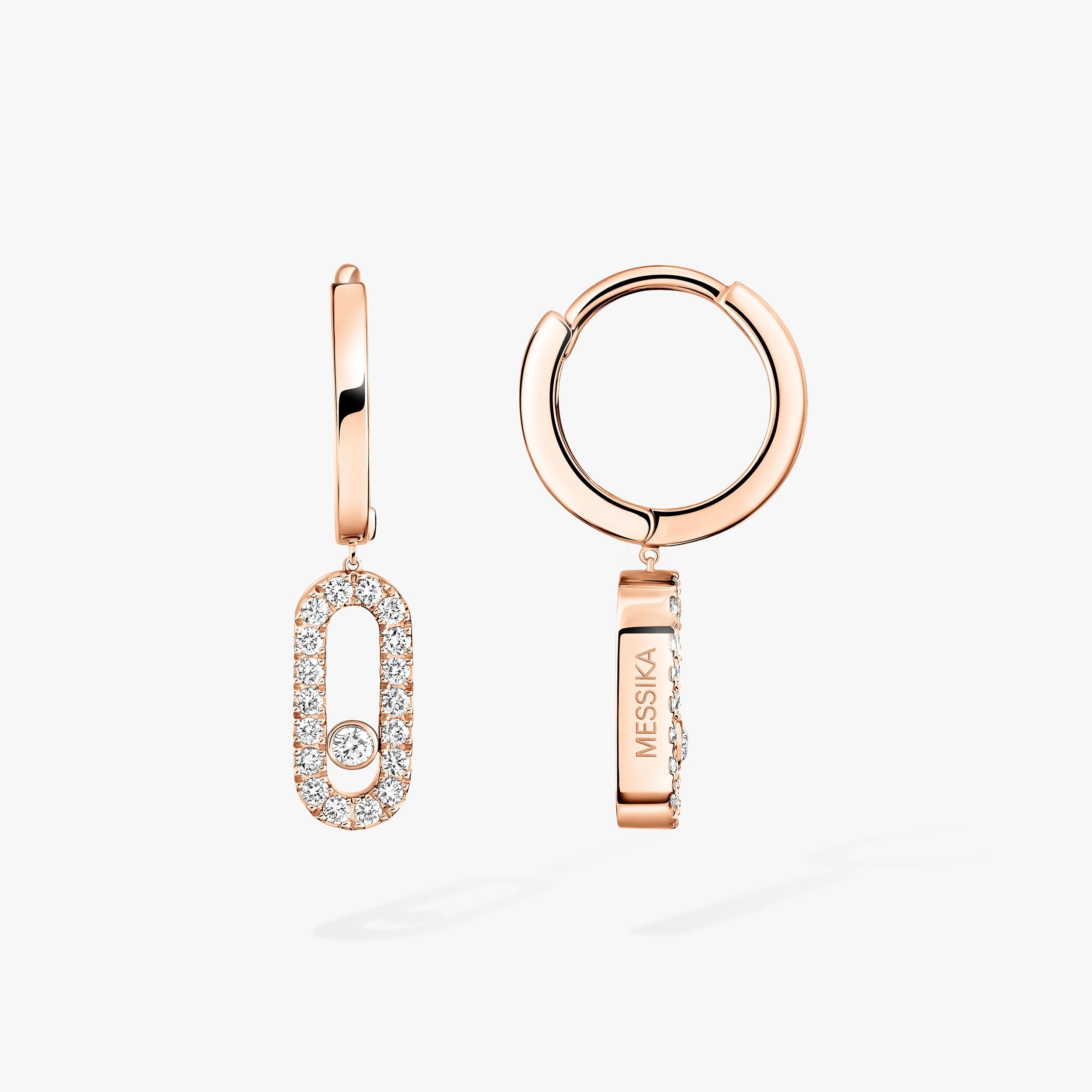 Réalisées en or rose 18 carats (750/1000), ces créoles adoptent les lignes épurées de la collection Move Uno, reconnaissable à son motif délicat accueillant un diamant mobile. Celui-ci évolue librement au cœur de son écrin pavé, captant la lumière à chaque mouvement pour offrir un éclat vivant et subtil.