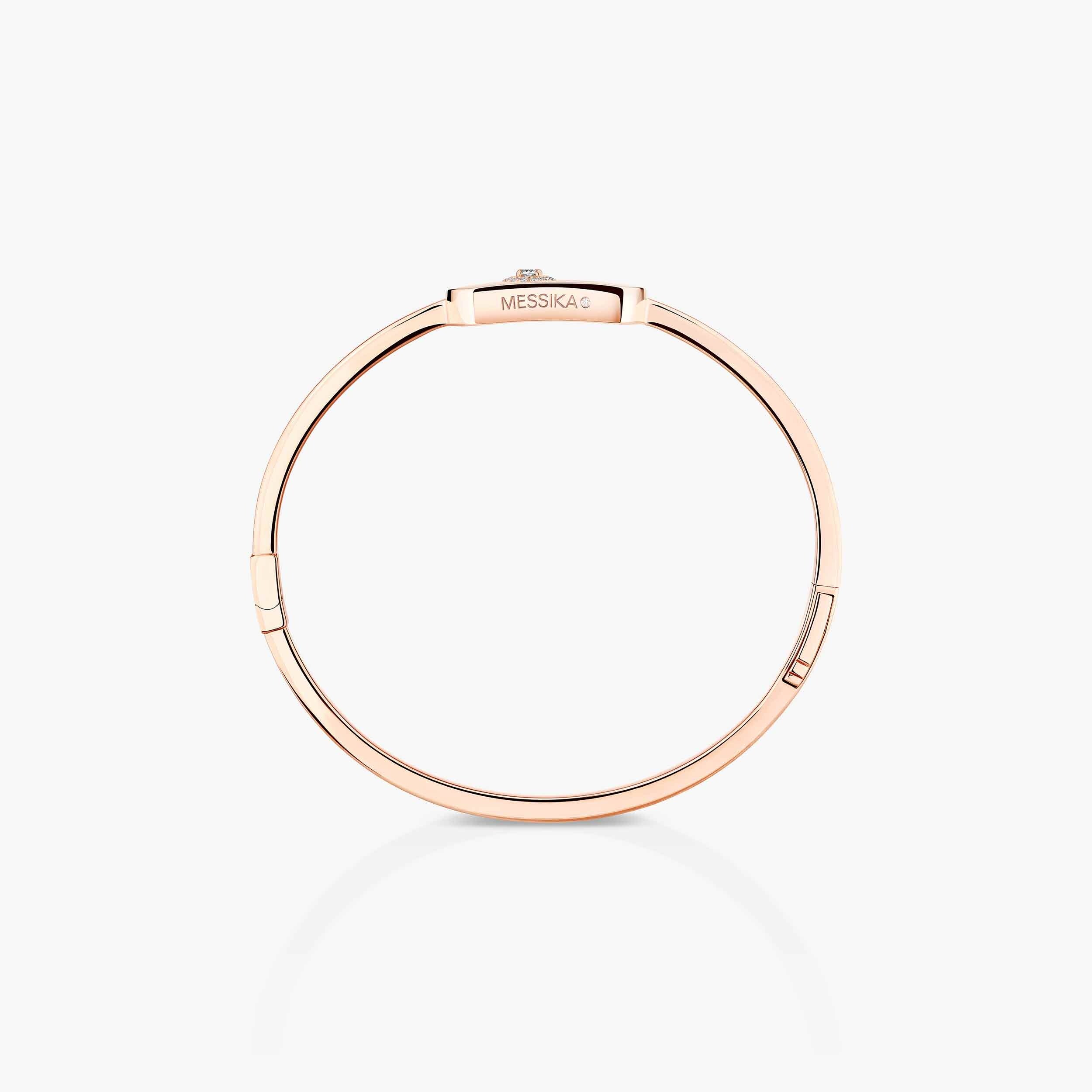 Le motif Move déploie ses 10,7 mm de largeur en or rose aux reflets chaleureux. Le diamant central capte et diffuse la lumière à chaque mouvement du poignet, encadré par un halo pavé signature qui démultiplie les éclats. La surface polie miroir de l'or rose sublime cette danse cristalline, créant des jeux d'ombre et de lumière d'une élégance saisissante.