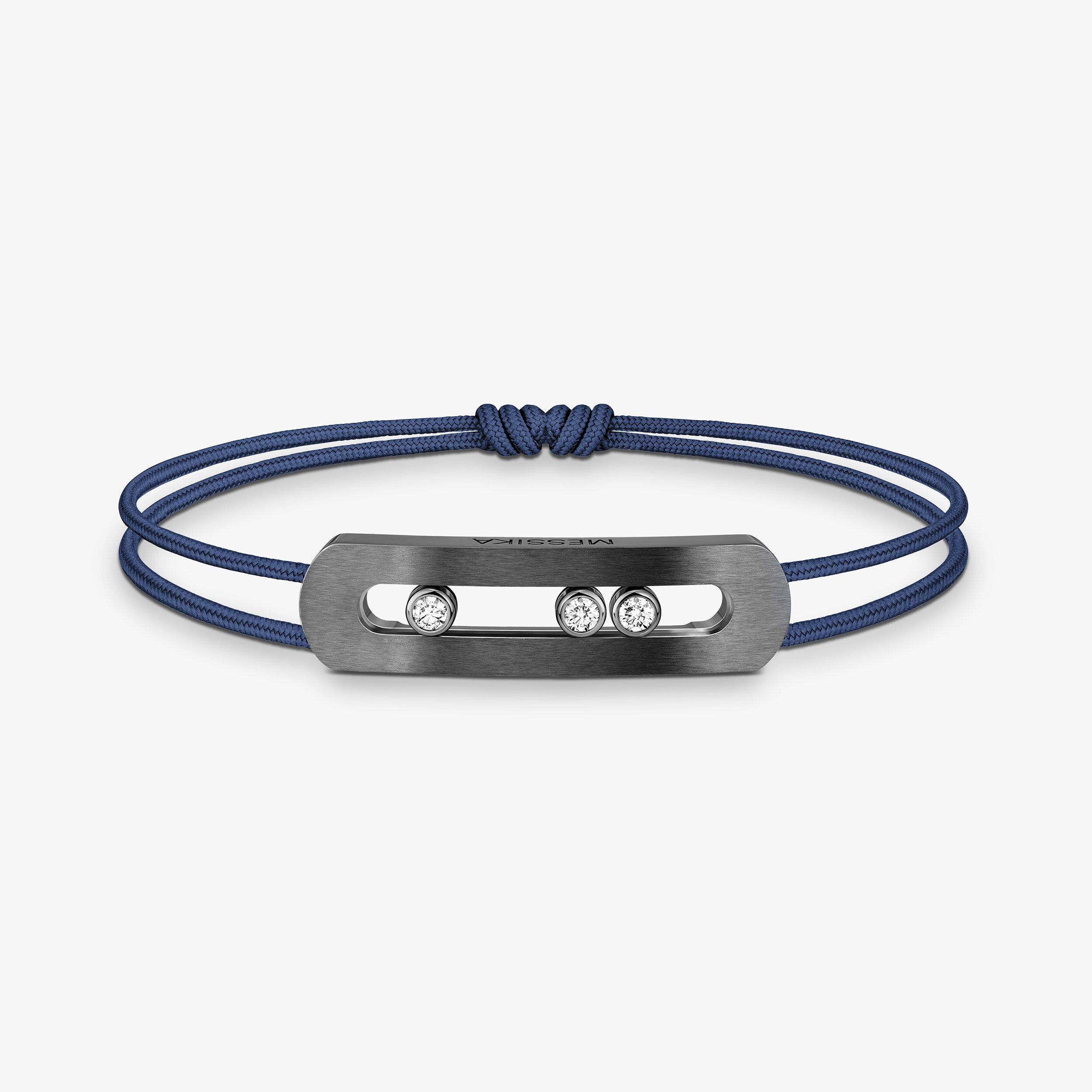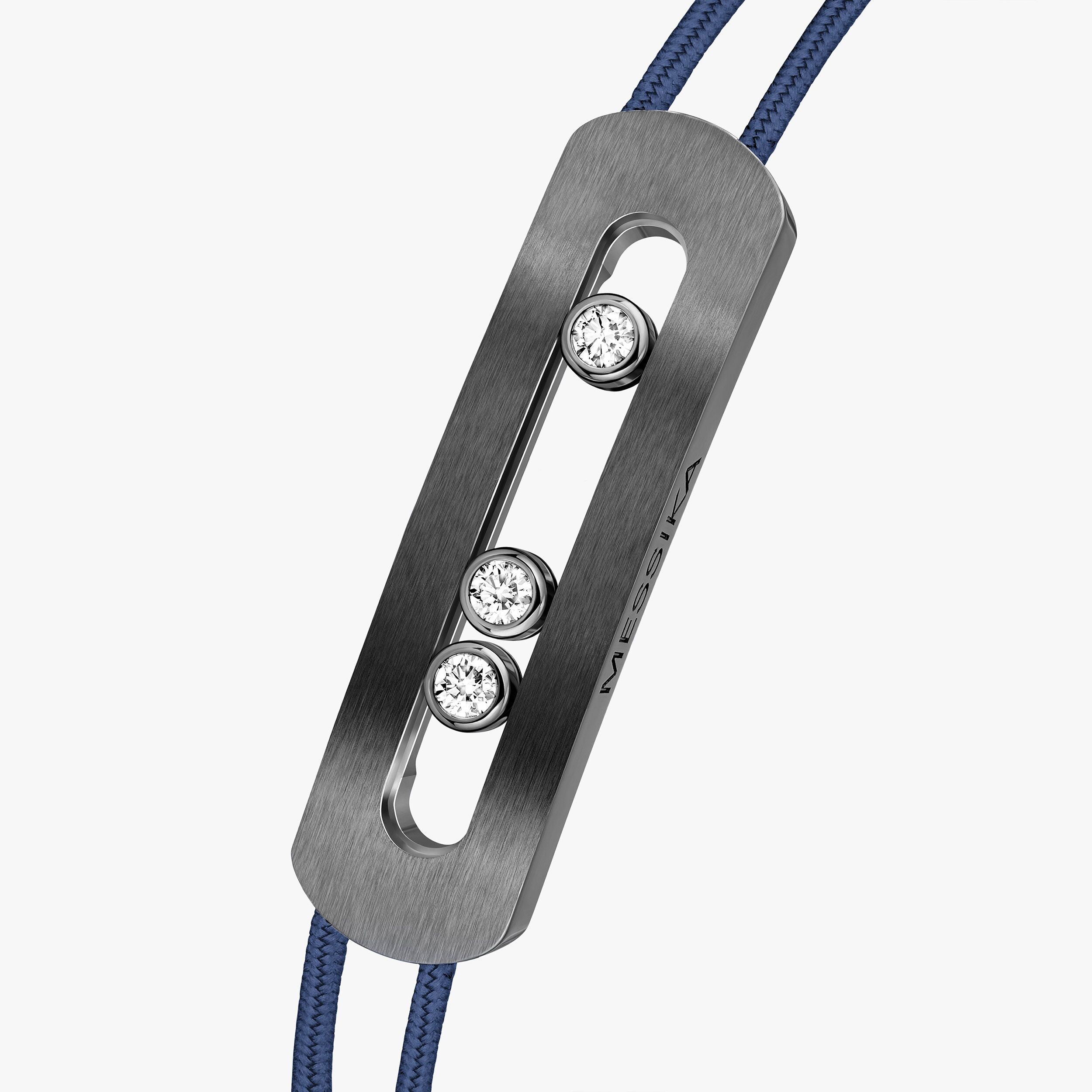 Le bracelet Move Titanium se décline désormais en version sur cordon. En titane brossé couleur graphite, il fait partie de la collection de joaillerie Move, icône de la maison Messika. Ce bracelet illustre l’esthétique contemporaine et masculine de la ligne Move Titanium, où la force du titane rencontre la lumière du diamant dans une interprétation moderne et raffinée.