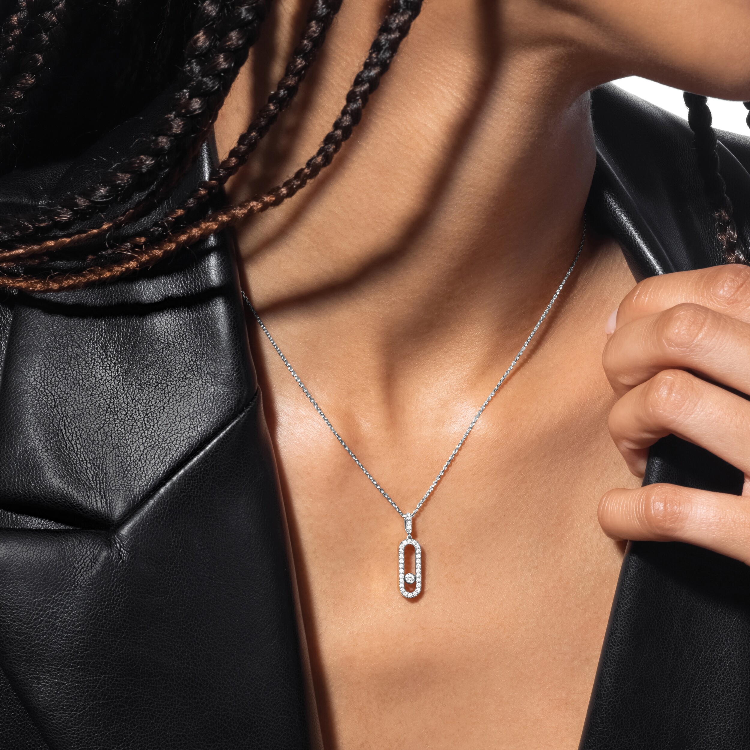 Le collier Move Uno GM pavé en or blanc et diamants s’impose ainsi comme un bijou signature, à la fois expression stylistique affirmée et compagnon précieux de chaque instant.