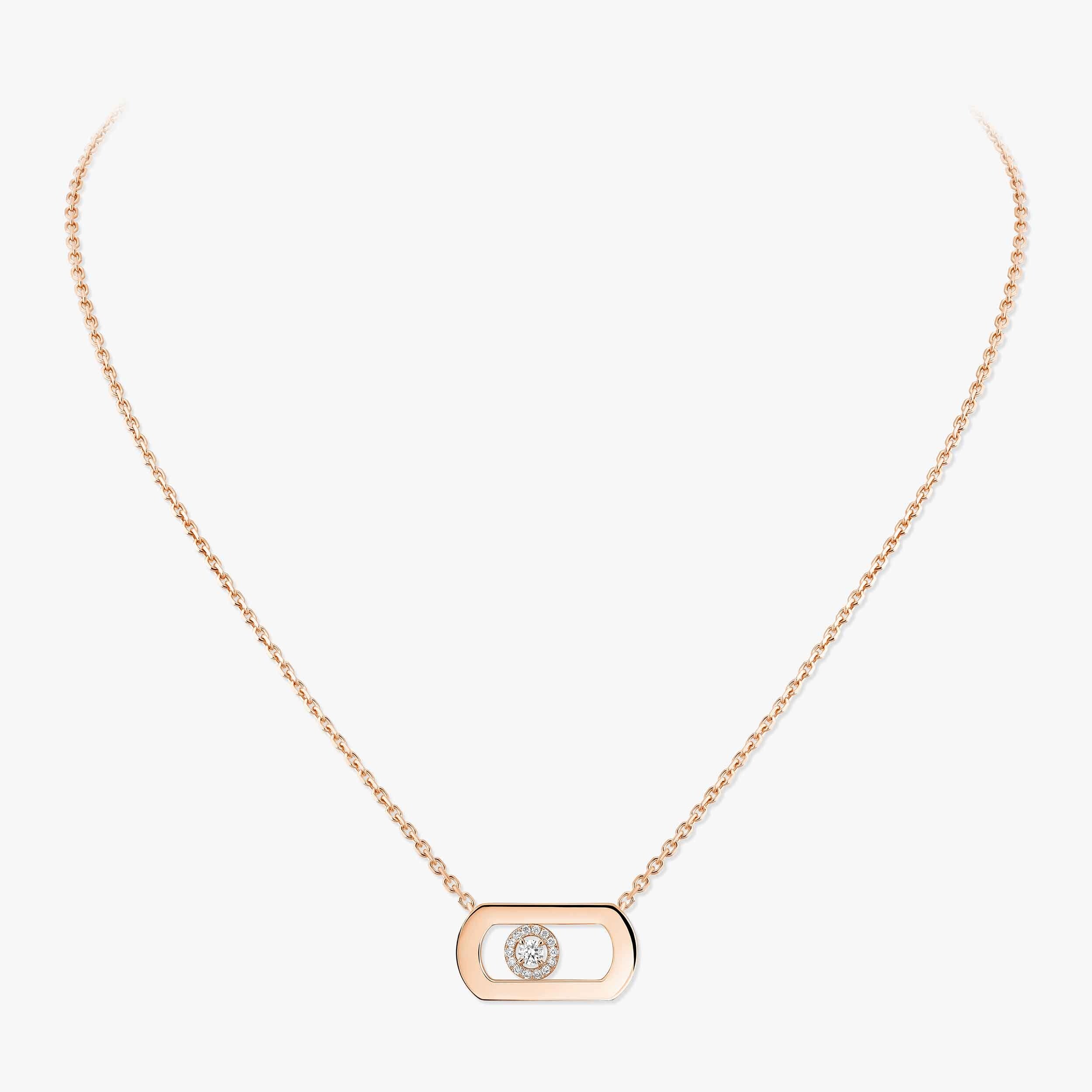 La chaîne en or rose, volontairement fine, met en valeur le motif central sans le concurrencer. Elle assure un port équilibré et confortable, permettant au collier So Move d’être porté seul comme pièce forte ou associé à d’autres colliers Messika pour une accumulation contemporaine.