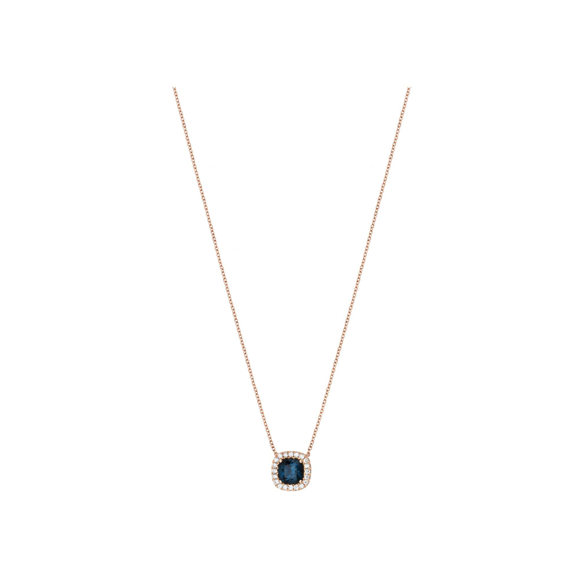 Collier San Marco en or rose, topaze Blue London et entourage diamants