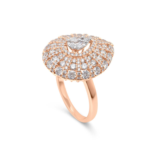 Collier Corsica rond en or rose, diamants poires multi illusion et double chaine